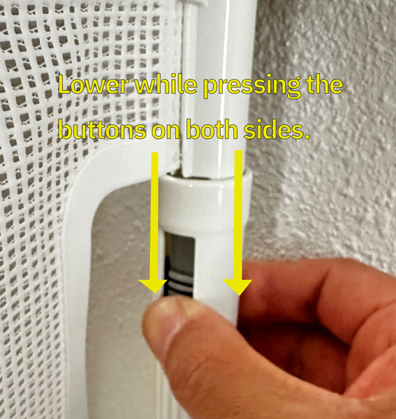 支柱にある両側のボタンを押しながら下げると支柱が外れます。