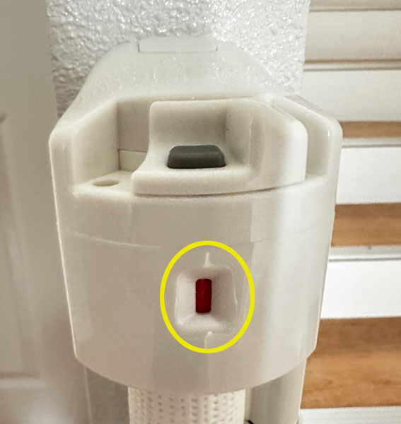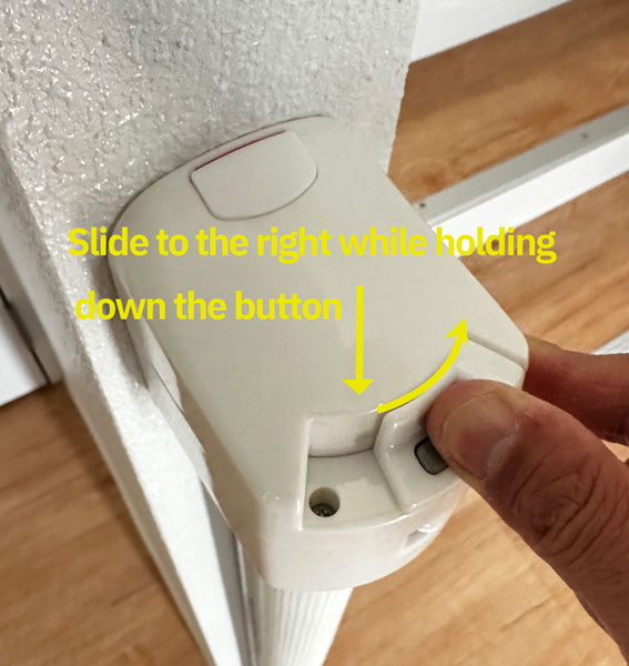 スライドが右にあり、表示が赤色の状態でロック解除です。