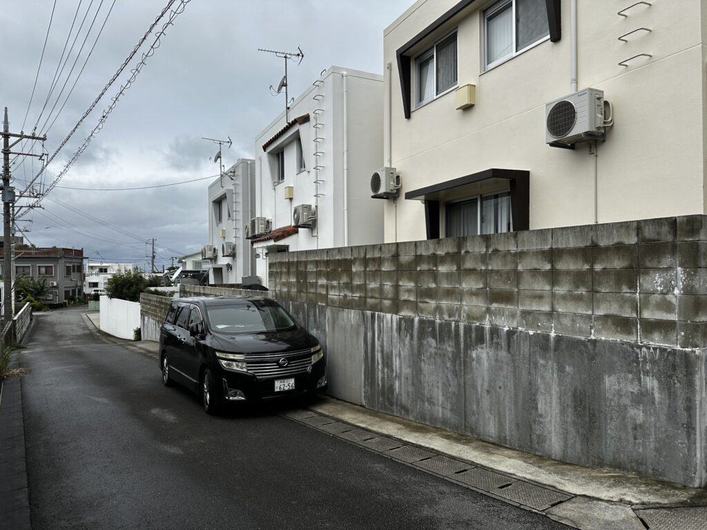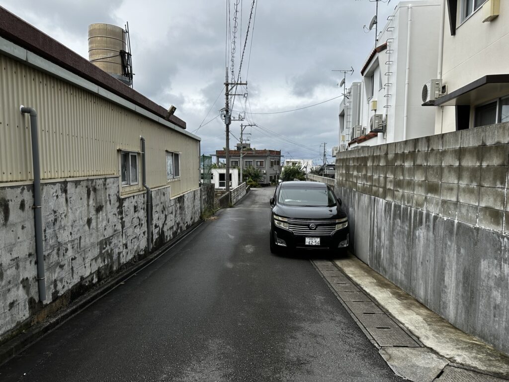 また、曲がり角の近くは邪魔になりますので、少し奥に駐車してください。