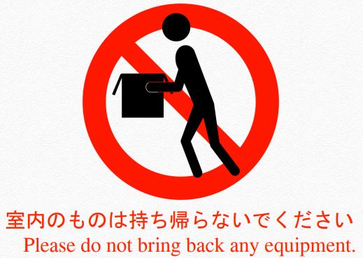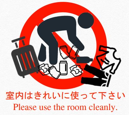 - 部屋にあるものを壊したり、持ち帰らないでください。